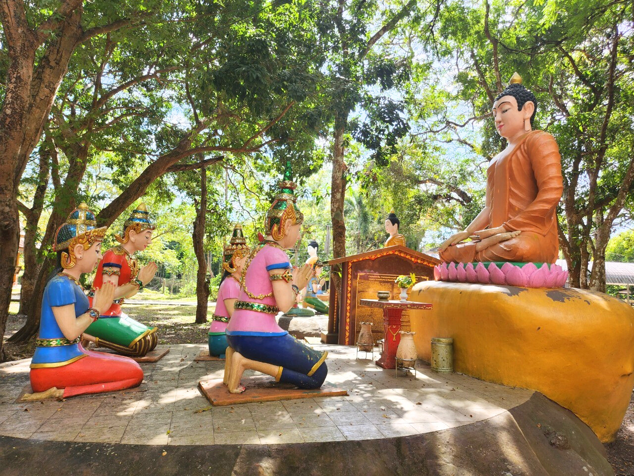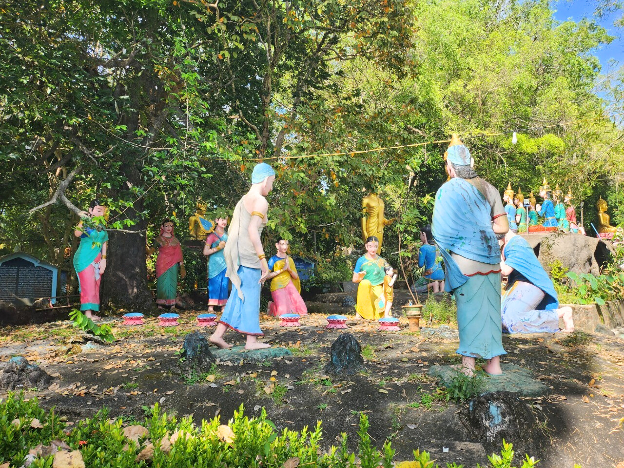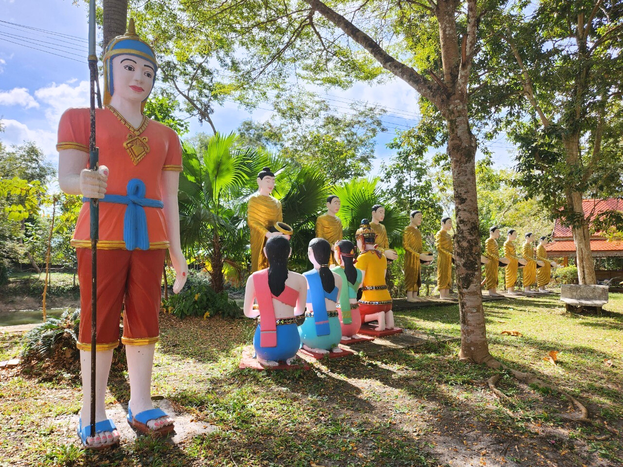ภายในวัดเต็มไปด้วยประติมากรรมเรื่องราวเกี่ยวกับพระพุทธศาสนามากมาย และมีป้ายอธิบายเรื่องราวของประติมากรรมต่างๆ ให้ได้เข้าใจอย่างละเอียด มีพระพุทธรูปปางนาคปรก มีกุฏิของสงฆ์ใช้ใบจากมุงหลังคาและมุงเป็นผนัง ซึ่งพระอาจารย์มหาบัวให้พระสงฆ์อยู่เพื่อปฏิบัติธรรม