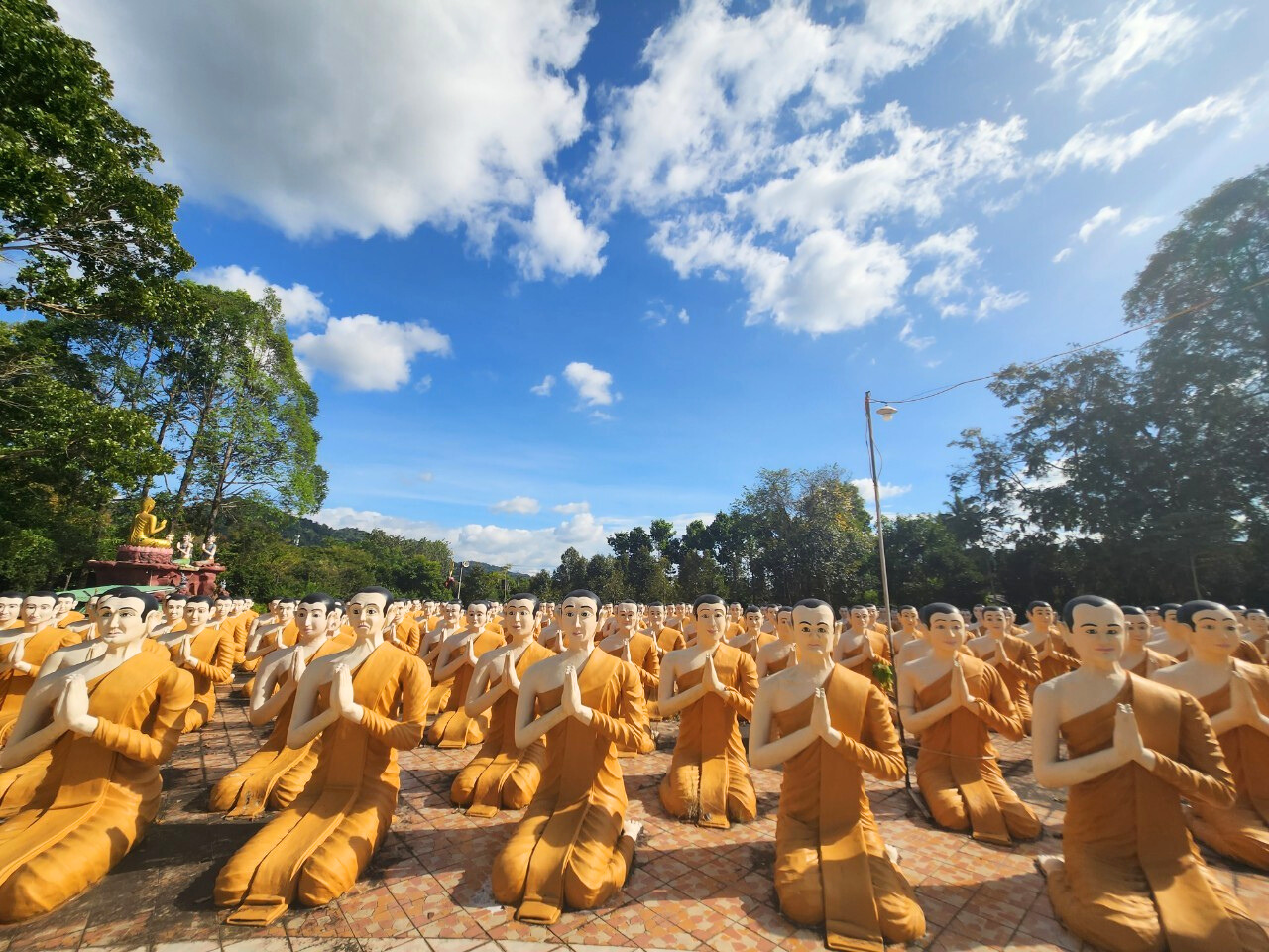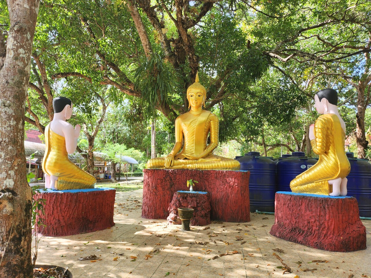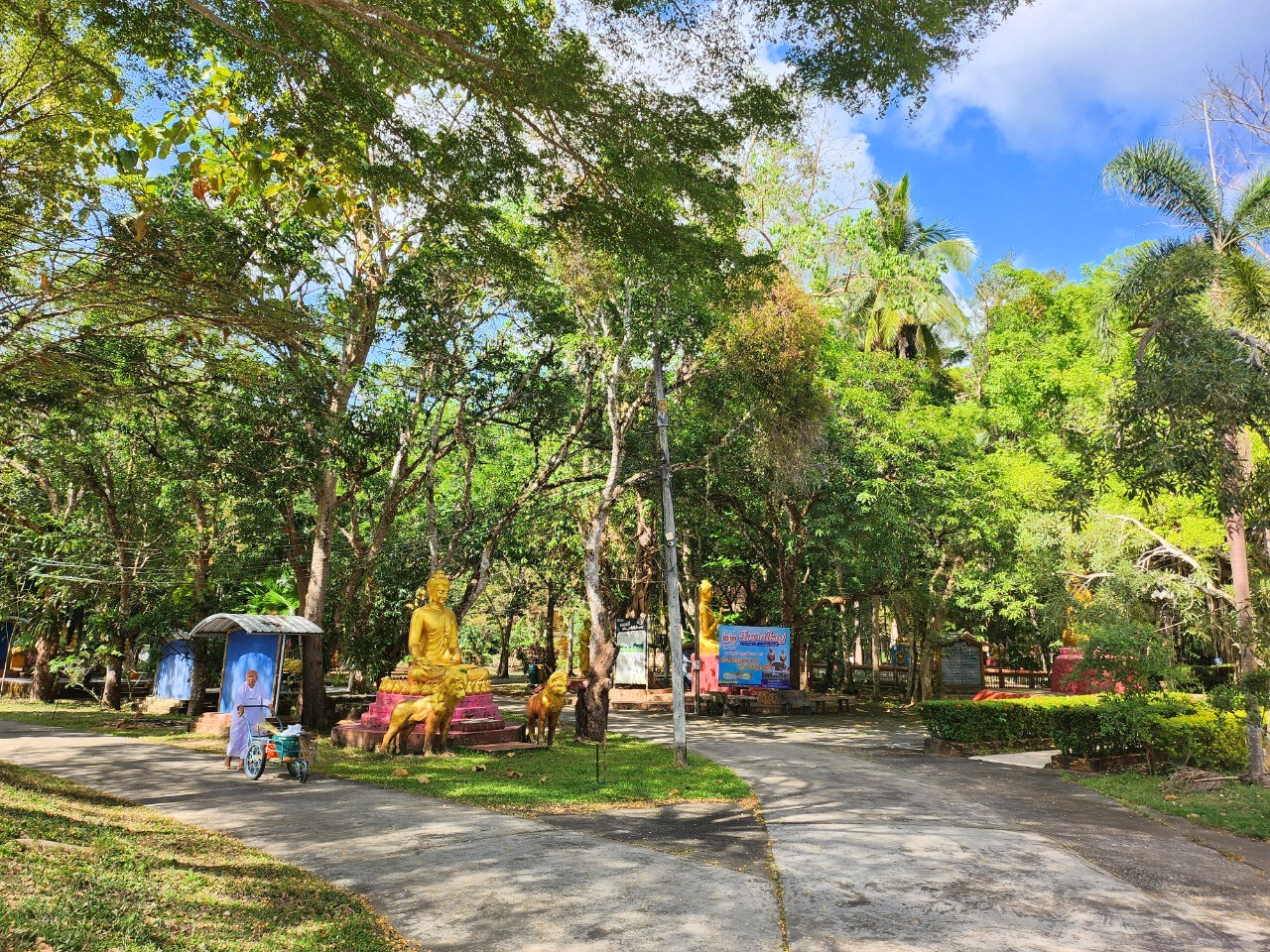 ภายในวัดเต็มไปด้วยประติมากรรมเรื่องราวเกี่ยวกับพระพุทธศาสนามากมาย และมีป้ายอธิบายเรื่องราวของประติมากรรมต่างๆ ให้ได้เข้าใจอย่างละเอียด มีพระพุทธรูปปางนาคปรก มีกุฏิของสงฆ์ใช้ใบจากมุงหลังคาและมุงเป็นผนัง ซึ่งพระอาจารย์มหาบัวให้พระสงฆ์อยู่เพื่อปฏิบัติธรรม