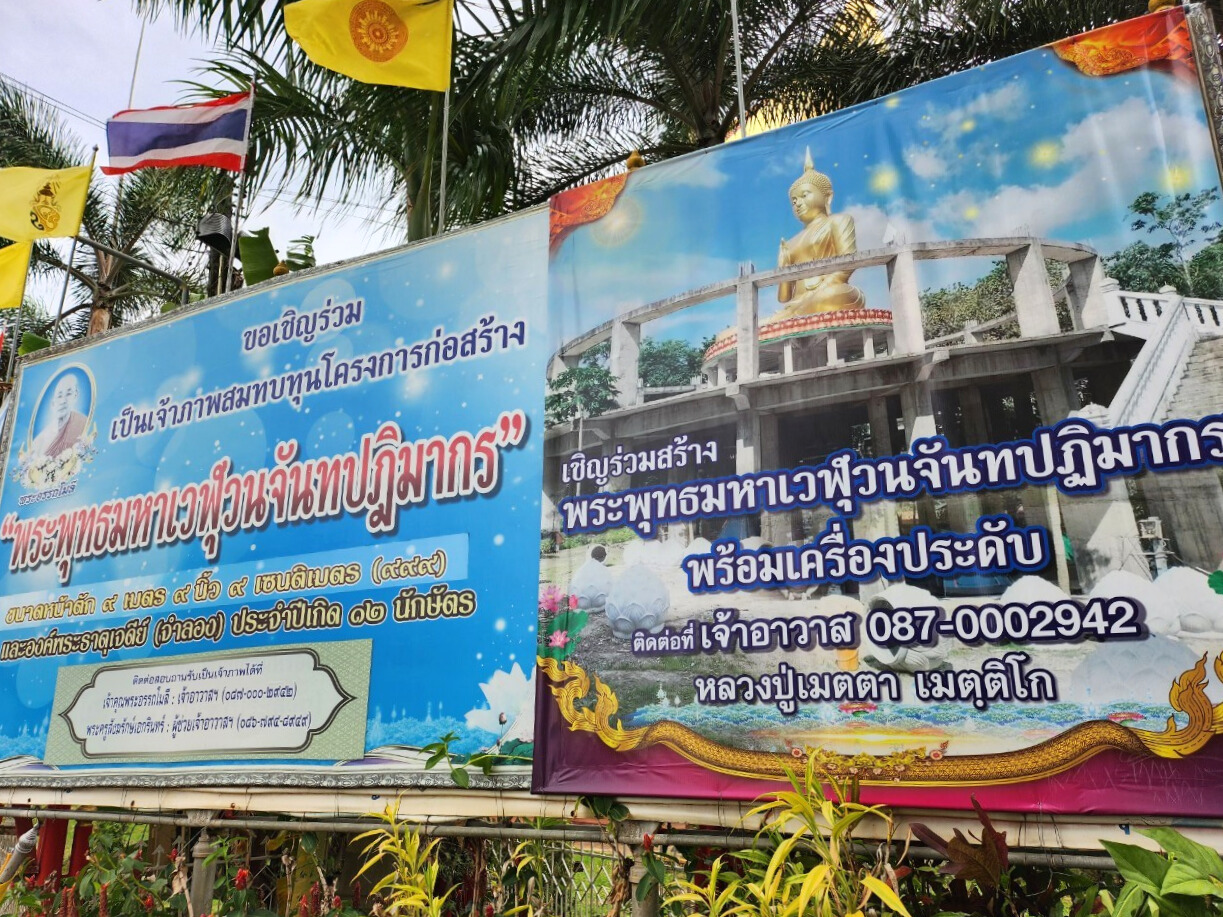 เชิญร่วมสร้าง พระพุทธมหาเวฬุวนจันทปฏิมากร พร้อมเครื่องประดับ ขนาดหน้าตัก 9 เมตร 9 นิ้ว 9 เซนติเมตร (999) และองค์พระธาตุเจดีย์ (จำลอง) ประจำปีเกิด 12 นักษัตร ติดต่อที่ 087-0002942 (เจ้าอาวาส) หรือ 086-7948949 (ผู้ช่วยเจ้าอาวาส)