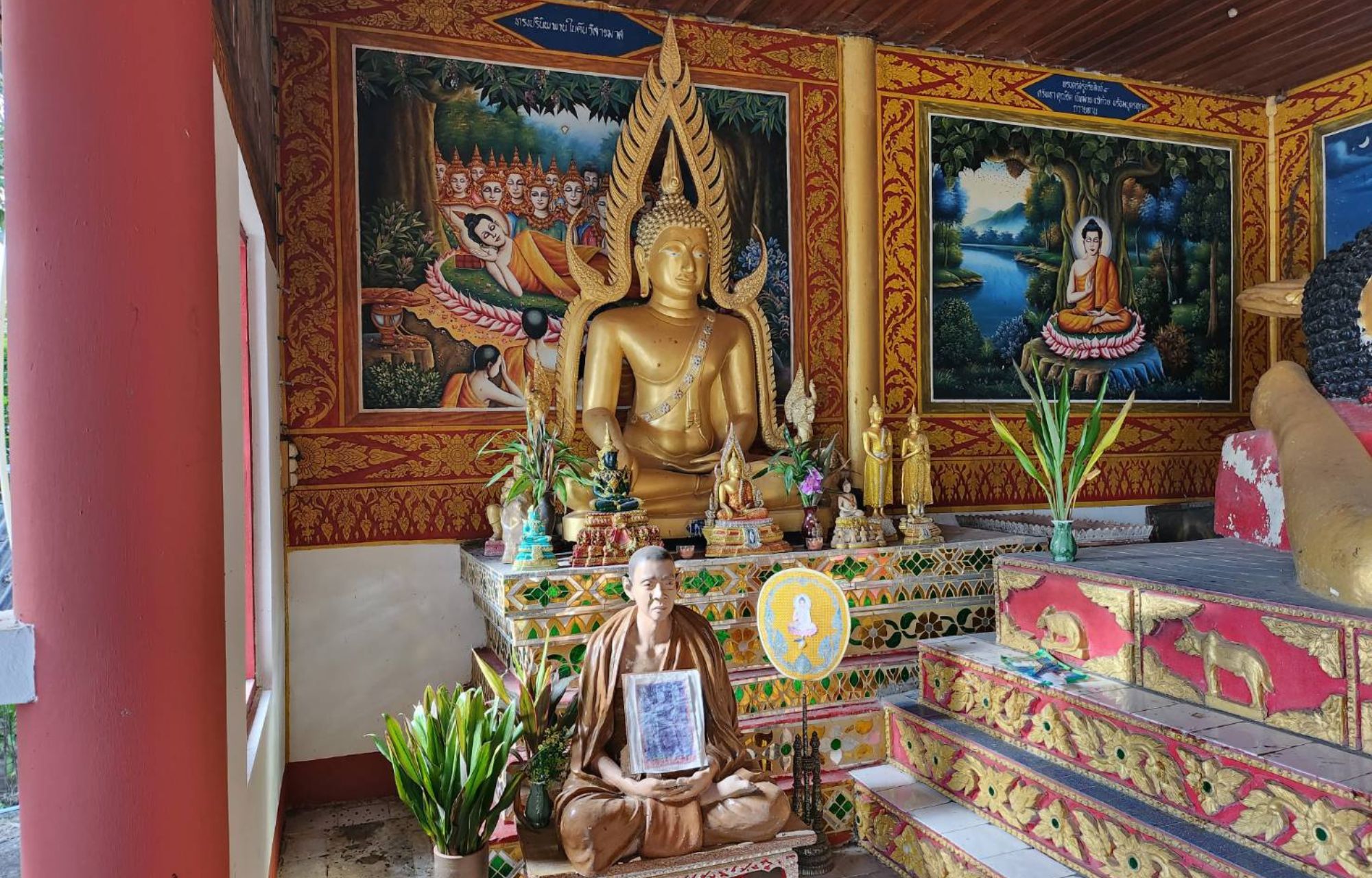 นอกจากนี้ วัดยังมีองค์พระพุทธรูปปางไสยาสน์ (พระนอน) หรือที่ชาวบ้านเรียกว่า “พระเจ้าพ้นทุกข์” ประดิษฐานอยู่ภายในอุโบสถ เพื่อให้นักท่องเที่ยวได้กราบสักการะบูชา และภายในอุโบสถยังมีภาพวาดฝาผนังเป็นเรื่องราวพุทธประวัติขององค์พระสัมมาสัมพุทธเจ้า