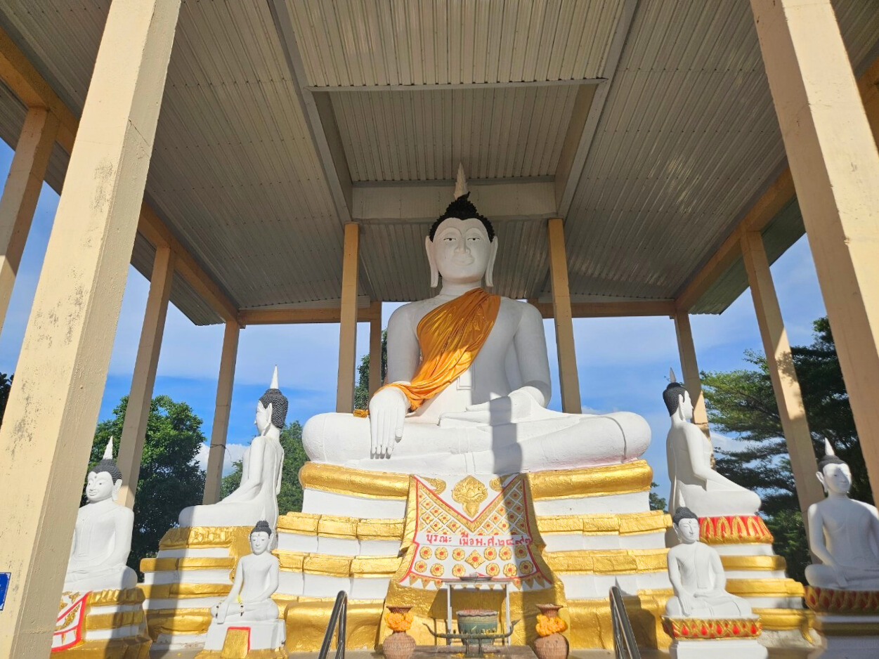 วิหารพระนั่ง ประดิษฐานพระพุทธรูป ปางมารวิชัย หรือ พระพุทธนิมิตพิชิตมาร ขนาดหน้าตักกว้าง 4.6 เมตร สันนิษฐานว่าเป็นพระพุทธรูปเก่า แต่ได้รับการปฏิสังขรณ์ใหม่ ทาด้วยสีขาว ต่อมาจึงเรียกว่า หลวงพ่อขาว และวิหารก็น่าจะถูกดัดแปลงจากวิหารเดิม โดยรื้อผนังออกให้กลายเป็นวิหารโถง